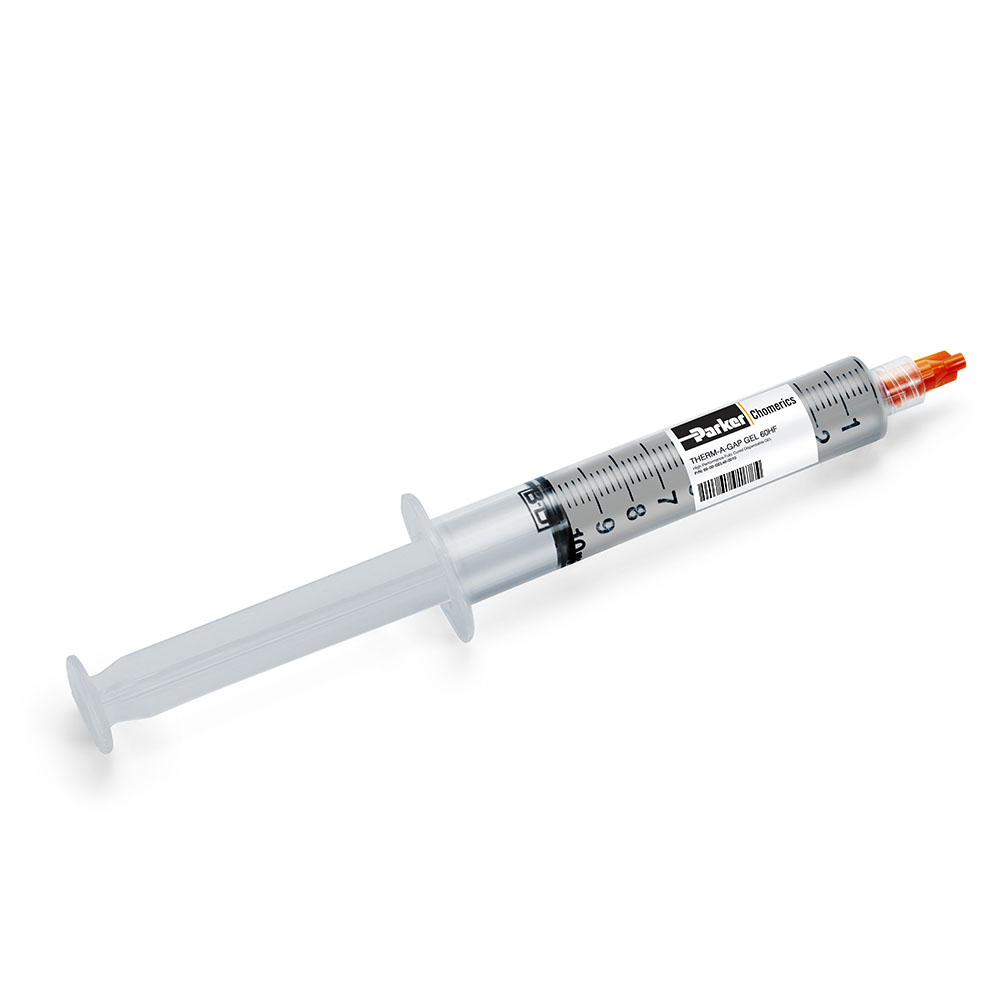 THERM-A-GAP GEL 60HF is part of the Parker Chomerics family of fully cured, one component, silicone-based, dispensable thermal interface materials. With a 6.2 W/m-K thermal conductivity, it is designed for high performance heat transfer from electronics components to cooling features and meant to be used across industries and applications.