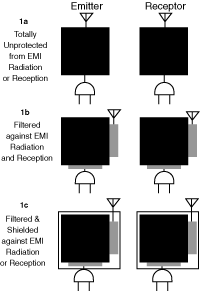 Government regulations in the US and many other countries prohibit electronic products from emitting EMI that could interfere with radio and television receivers. European regulations also include EMI immunity levels. Manufacturers of commercial electronic products generally contend with three types of EMI problems:
