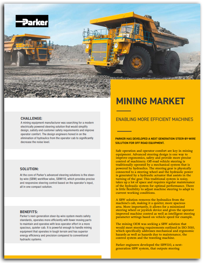 Three forms of literature were developed after researching trends, interviewing Parker subject matter experts and product engineers across our divisions. Each gives a high level overview of how Parker is addressing key trends in the mining industry.
