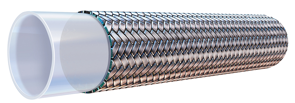 PTFE 919 hose, for central tire inflation applications, features a high abrasion stainless steel braid that works well in very wet applications. PTFE hose is light weight, has a small bend radius and is shipped in extremely small packaging.